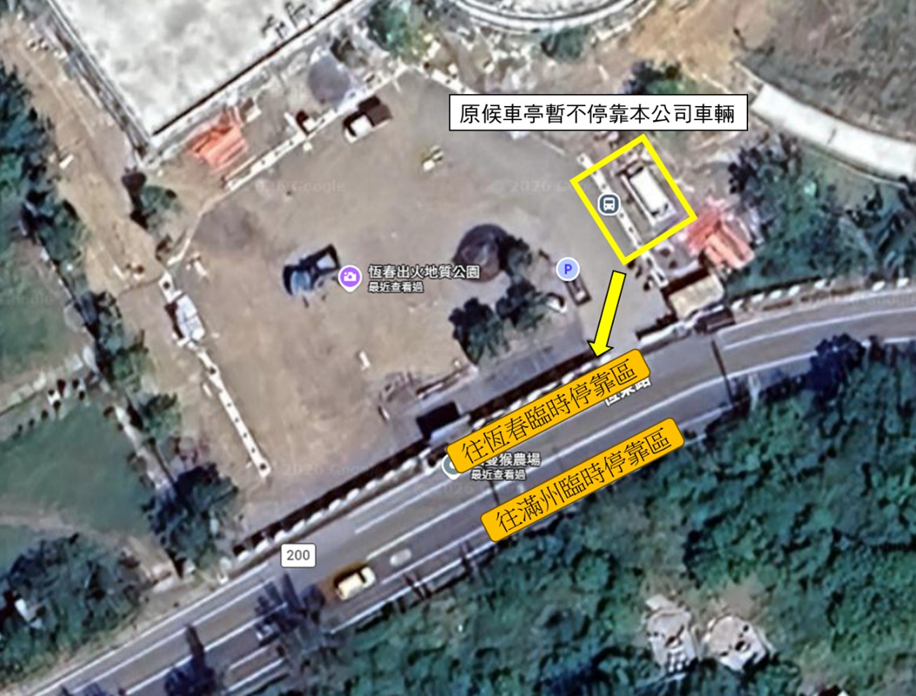 主旨:有關本公司【103】、【303】及【304】等3條市區客運路線停靠之「恆春出火地質公園」站,即日起臨時調整停靠位置,特此通知。