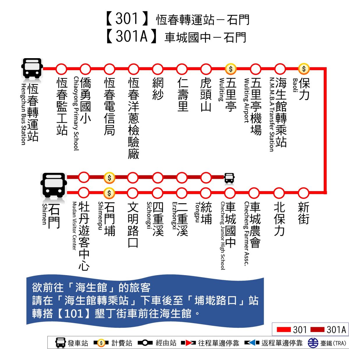 | 恆春 | 恆春轉運站、恆春監工站、僑勇國小、恆春電信局、田尾 |