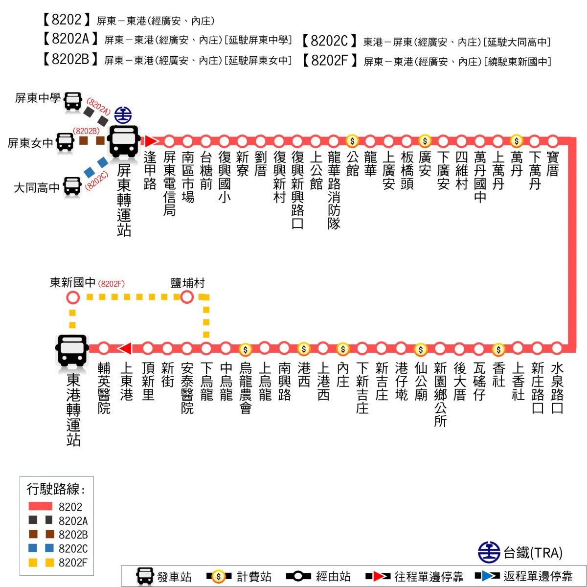 東港 | 東新國中(支線F)、安泰醫院、新街、頂新里、上東港(往)、輔英醫院、東港轉運站 |
