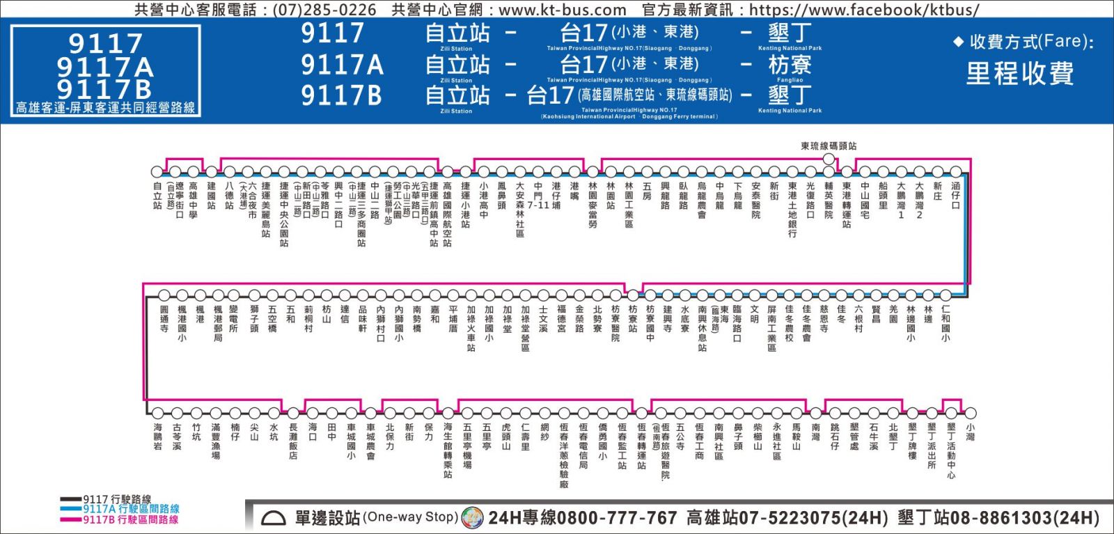 | 枋寮 | 枋寮國中、枋寮(支線A終點)、枋寮醫院、北勢寮、金榮路 |