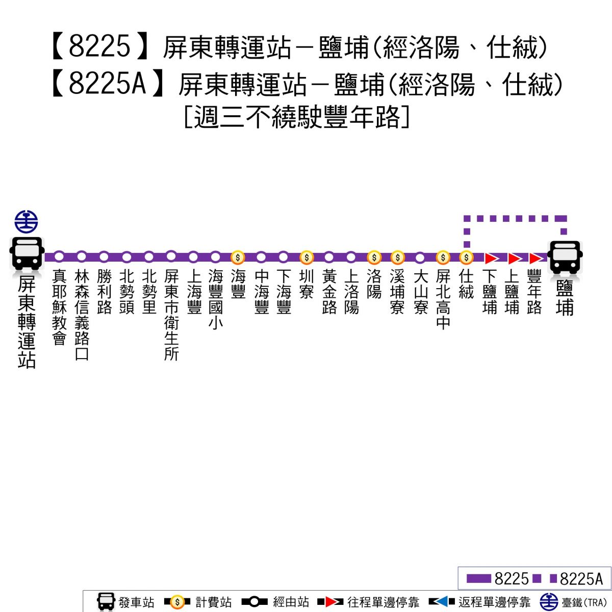 | 路線 | 支線 | 鹽埔 | 屏東 | 備註 |
